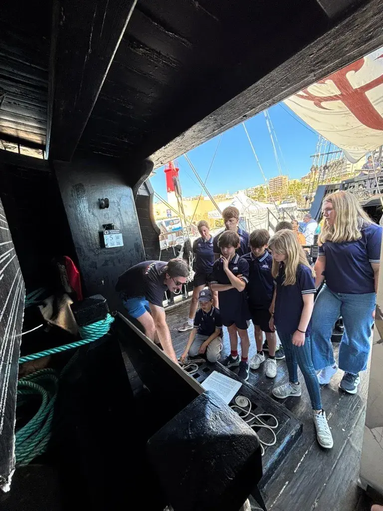 Durante la visita, los regatistas fueron recibidos por la tripulación, que les acompañó en un recorrido por el emblemático barco. A lo largo de la experiencia, pudieron descubrir de cerca la historia de esta embarcación, su relevancia en la navegación y conocer mejor el funcionamiento de su aparejo y estructura.