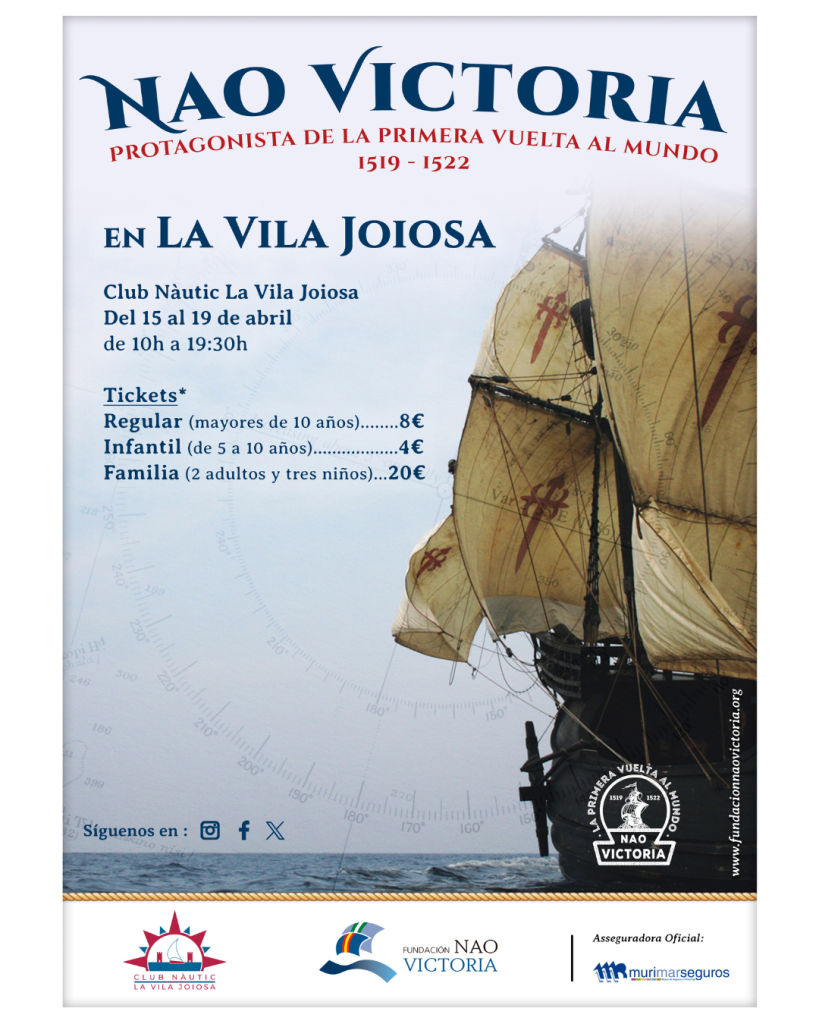 El Club Nàutic La Vila Joiosa acogerá del 15 al 19 de abril la visita de la emblemática Nao Victoria, réplica del histórico navío que completó la primera vuelta al mundo (1519-1522).